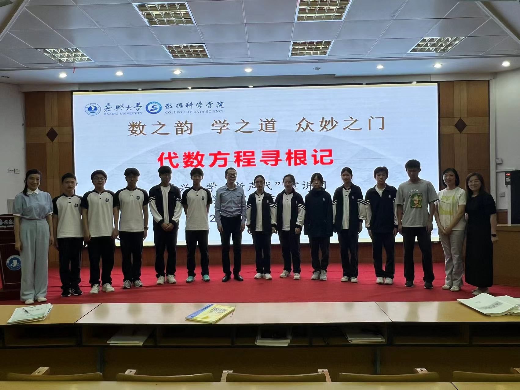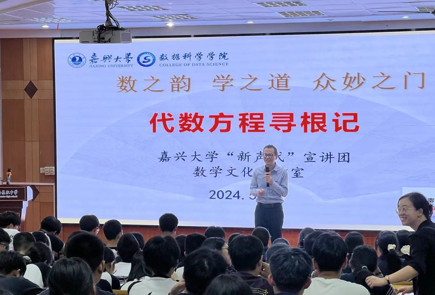 在嘉兴市科协学会部的积极引荐与协作下,并得到本市相关中学领导的大力支持与配合,经过前期精心策划和准备,由首批“创新嘉兴.优才支持计划”嘉兴市教育拔尖人才——3044永利集团官网3044永利集团官网闵啸副教授领衔的数科“新声代”宣讲团联合数学文化工作室倡导的“数之韵,学之道,众妙之门”数学文化系列讲座近日顺利走进我市中学校园,于2024年5月27日和30日分别在清华附中嘉兴学校以及嘉兴高级中学各举办一场。本讲座旨在为广大中学生普及数学文化与应用知识,讲好数学故事,传播数学风尚,引导大家在数学的海洋中开拓视野,深化认知,增进思考,丰富理念,加强理学修养,提升数学兴趣。