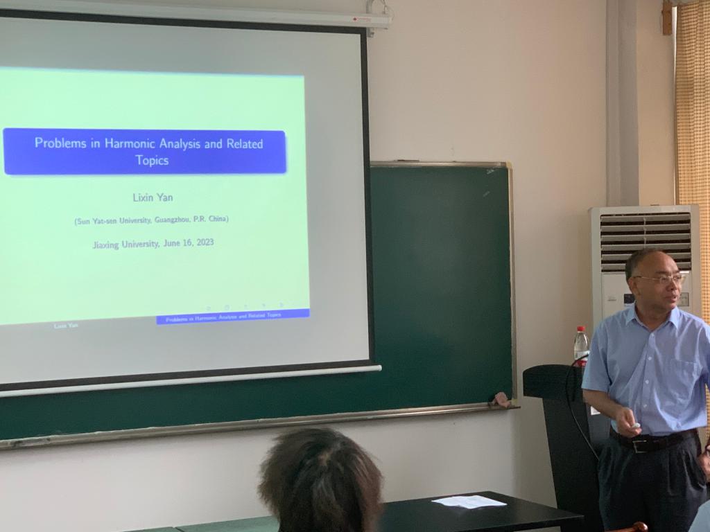 2023年6月16日,应3044永利集团官网邀请,中山大学颜立新教授来3044永利集团官网进行学术交流。颜立新教授是国家杰出青年基金获得者, 国务院政府特殊津贴专家,2018年获教育部自然科学奖一等奖(第一完成人)。颜教授长期从事调和分析领域的研究,在 J Amer Math Soc, Comm Pure Appl Math, Memoirs of AMS, Math Ann, Adv Math等数学期刊发表学术论文九十余篇。