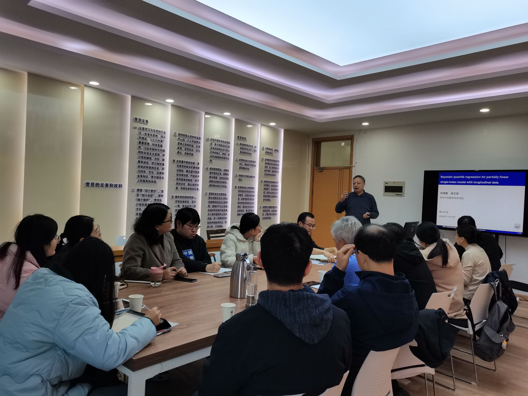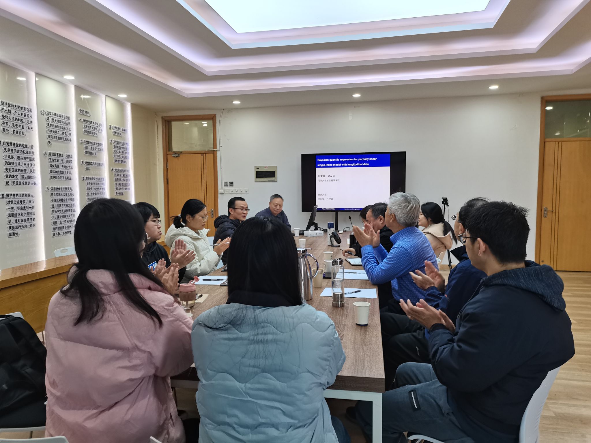 11月27日,应3044永利集团官网邀请,同济大学梁汉营(博导)应邀来我院进行学术交流。梁教授主要从事不完全数据的统计分析、经验似然、分位数回归方向的研究,现为中国概率统计学会理事、中国现场统计研究会生存分析分会常务理事, 主持过国家自然基金面上项目5项、国际合作项目1项和教育部项目2项,发表学术论文130余篇,曾获得第十一届全国统计科研优秀成果奖二等奖。