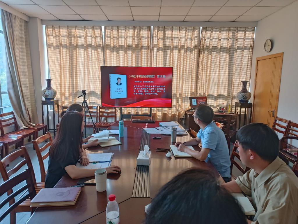 战昕指出,《习近平谈治国理政》第四卷生动记录了以习近平同志为核心的党中央,面对百年变局和世纪疫情相互叠加、世界进入新的动荡变革期的复杂局面,面对世所罕见、史所罕见的风险挑战,统筹国内国际两个大局,统筹疫情防控和经济社会发展,统筹发展和安全,团结带领全党全国各族人民在中华大地上 全面建成小康社会、开启全面建设社会主义现代化国家新征程的伟大实践;集中展现了马克思主义中国化的最新成果;充分体现了我们党为推动构建人类命运共同体、共建美好世界作出的最新贡献。我们要深刻认识学习贯彻《习近平谈治国理政》第四卷的重大意义,准确把握主要内容与核心要义,各党支部要强化学习组织,开展好“三会一课”、主题党日活动、教职工政治理论学习,在学懂弄通做实上下功夫,不断增强“两个维护”的思想自觉、政治自觉、行动自觉。