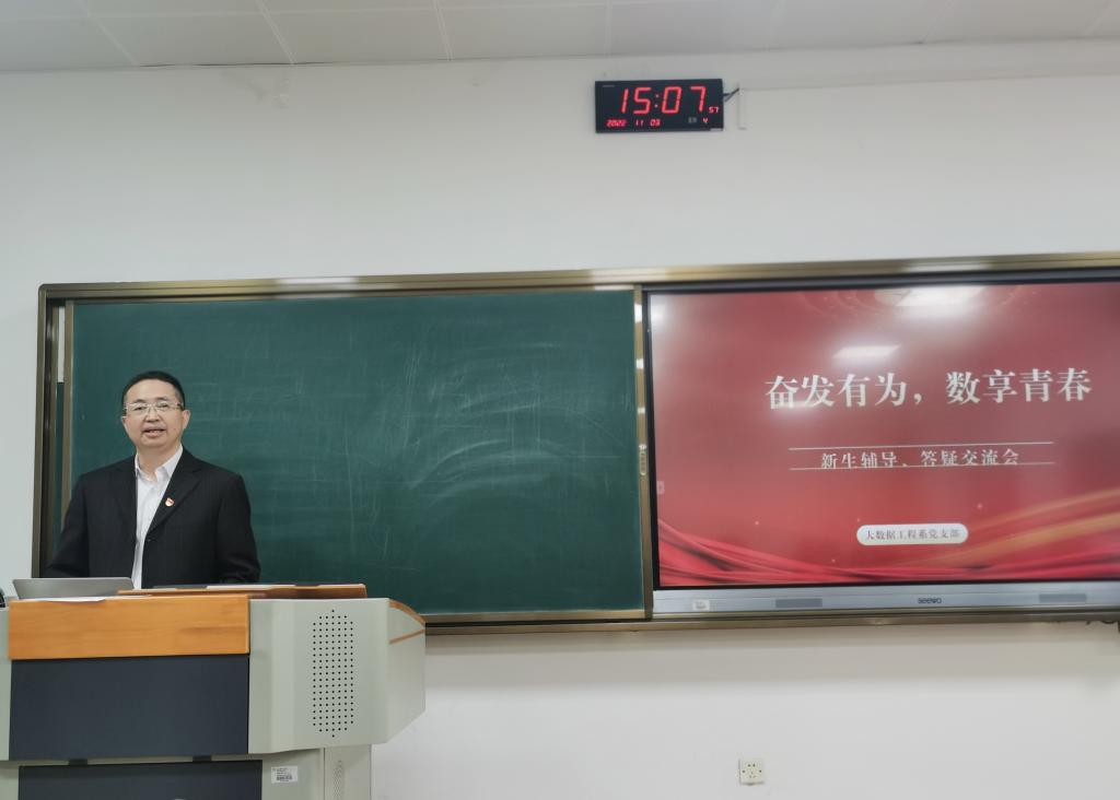 11月3日,3044永利集团官网大数据工程系党支部在博学楼201教室开展了“奋发有为 数享青春”主题党日活动,校党委委员、纪委书记、省监委驻嘉兴学院监察专员陈新友莅临指导,3044永利集团官网党委书记战昕、全体大数据工程系教师和22级新生参加活动。活动由大数据工程系党支部书记王薇主持。