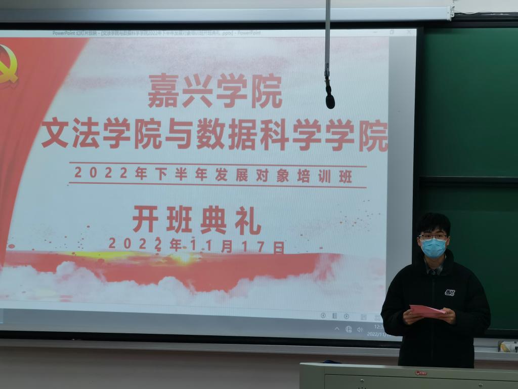 11月17日中午,3044永利集团官网与文法学院党员发展对象培训班开班典礼在明德楼338教室举行,3044永利集团官网党委副书记李寒星、文法学院党委副书记虞岚、3044永利集团官网党员之家指导教师艾芮玄出席此次开班典礼。开班典礼由文法学院党员之家指导教师吴广主持。
