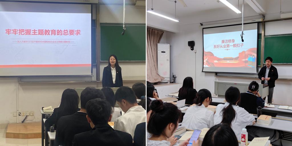 会议伊始,战昕以《牢牢把握主题教育的总要求——踔厉奋发 扬帆远航》为题,为毕业生党员上了大学期间的最后一次党课。战昕指出,党员要根据主题教育的总要求——学思想、强党性、重实践、建新功,坚持学思用贯通、知信行统一,把习近平新时代中国特色社会主义思想转化为坚定理想、锤炼党性和指导实践、推动工作的强大力量,要求毕业生党员读原著、学原文、悟原理,进一步厚植家国情怀、涵养进取品格,以奋斗姿态激扬青春,不负时代,不负韶华。同时也对毕业生党员组织关系转接、文明离校等工作提出了相关要求。此后,李寒星从《如何扣好职业的第一颗扣子》为主题,为学生党员在恪守职业道德,提高职业修养,坚持廉洁从业等方面对同学提出了希望。