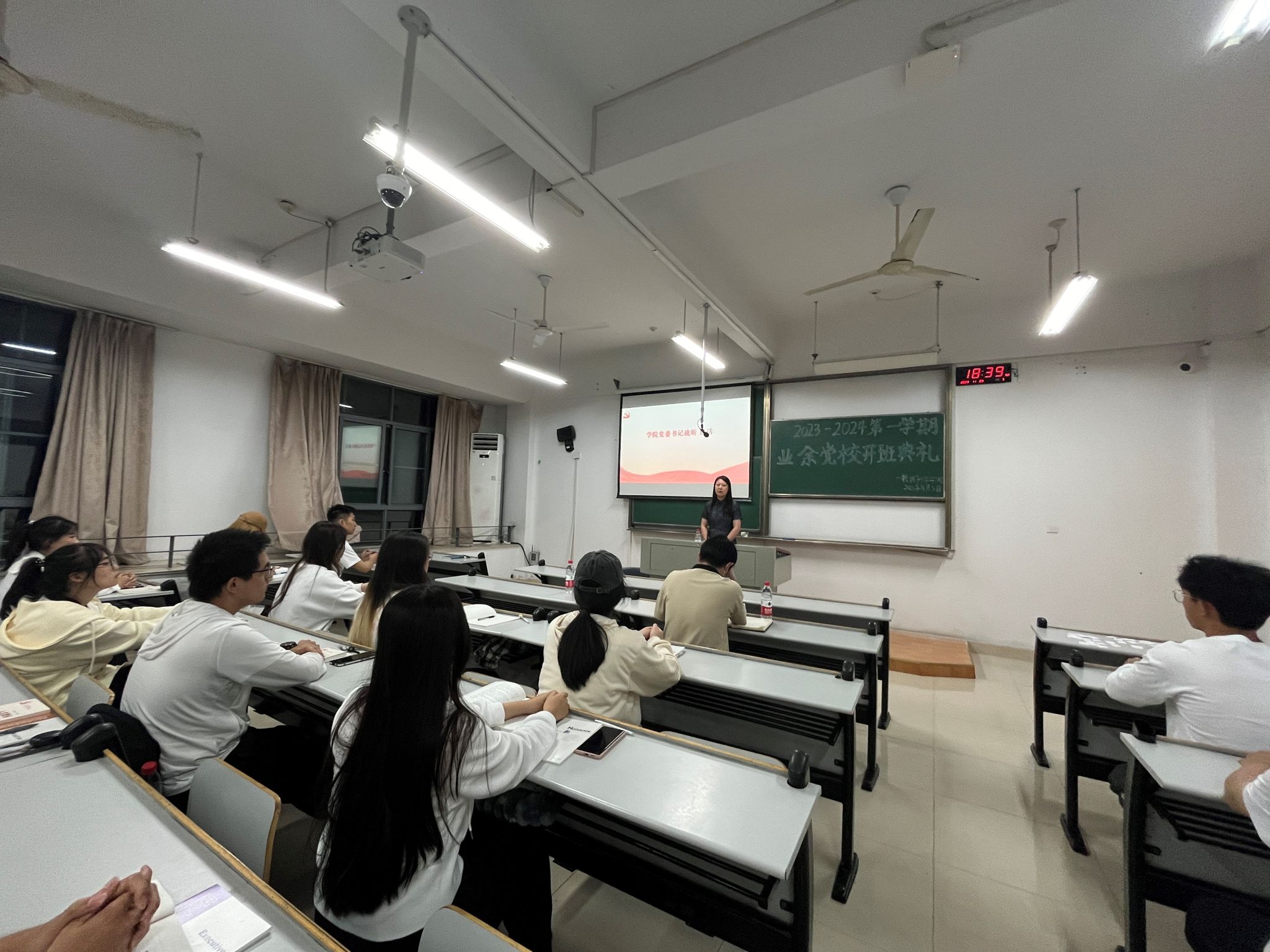开班典礼在庄严的国际歌中圆满结束。随后,战昕以“中国共产党的组织制度与作风纪律”为题,为本期党校培训班开讲第一课。