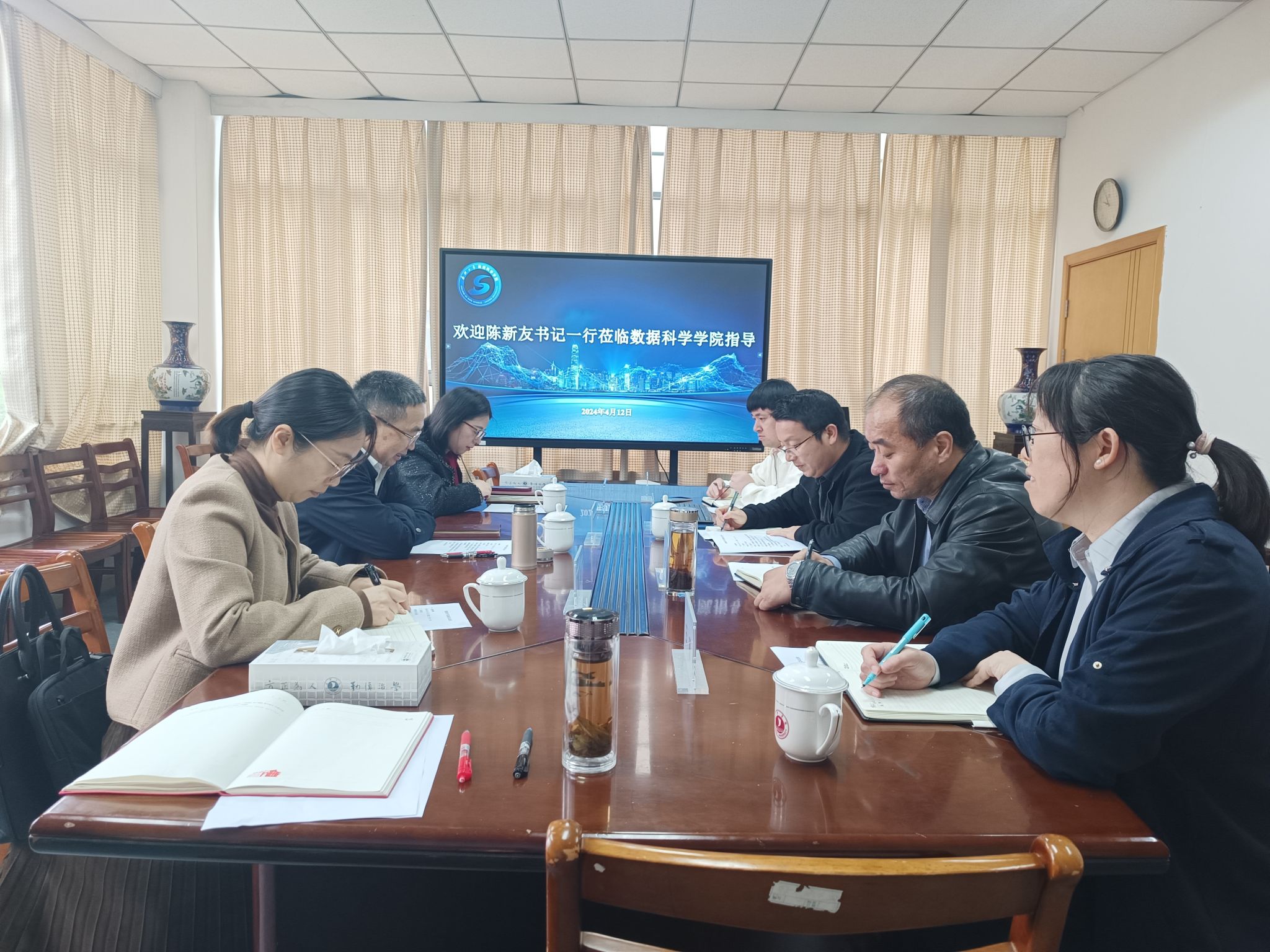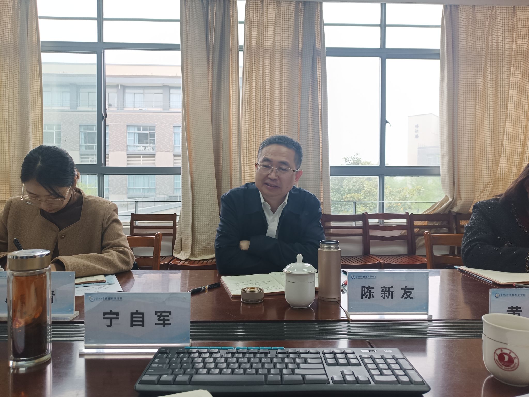 陈新友认真听取汇报,与参会人员展开深入交流。他充分肯定了学院领导班子团结一心、开拓进取的精神风貌,同时也对学院今后的工作发展提出了三点要求:一是聚焦立德树人根本任务,加强教育教学改革,不断提高人才培养质量;二是聚焦“数说清廉”品牌打造,纵深推进清廉数科建设,不断深化清廉学院示范点建设;三是聚焦贯通融合争创一流,以党建引领学院事业高质量发展,以优异的工作成绩为学校事业发展贡献力量。
