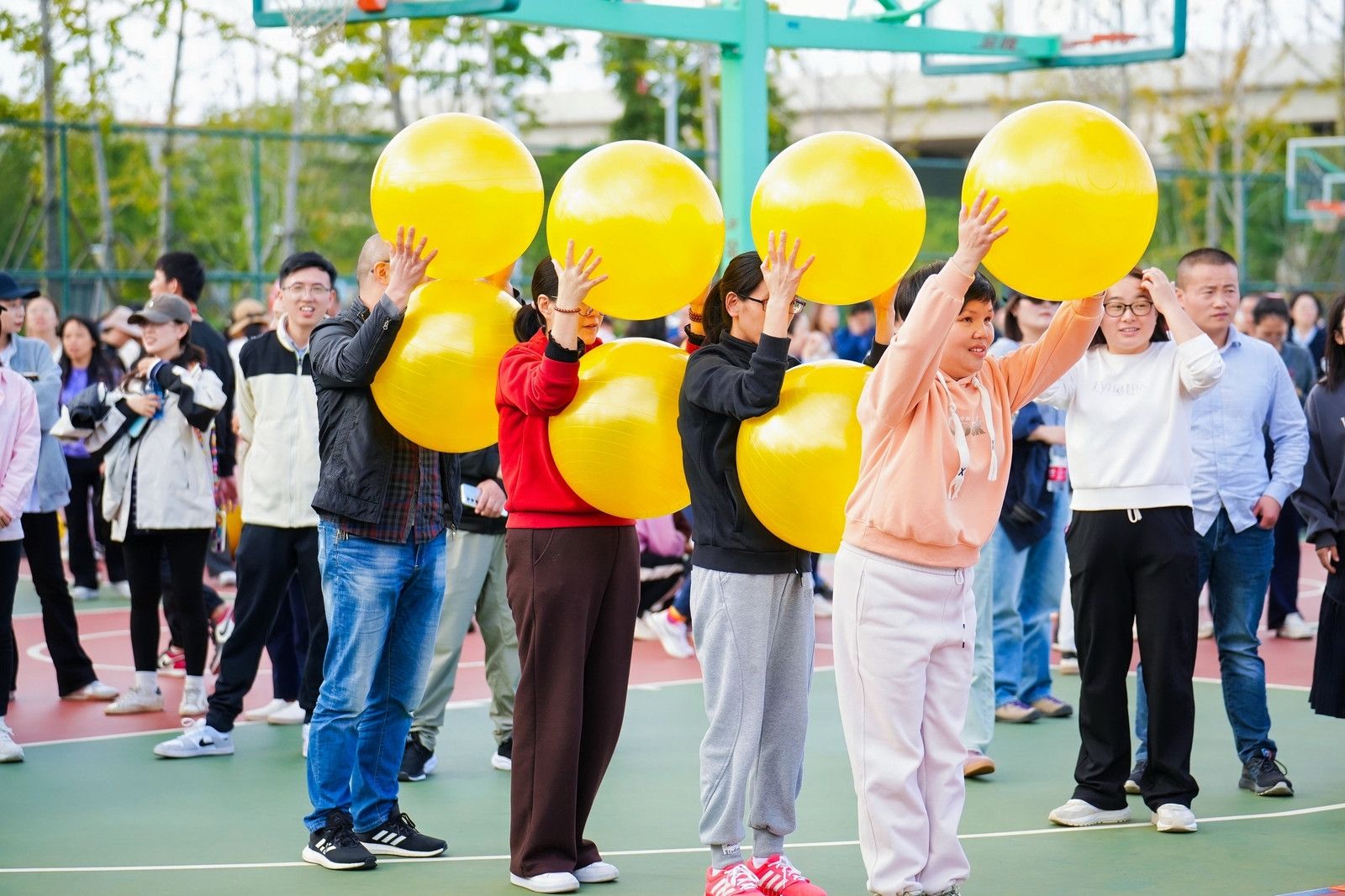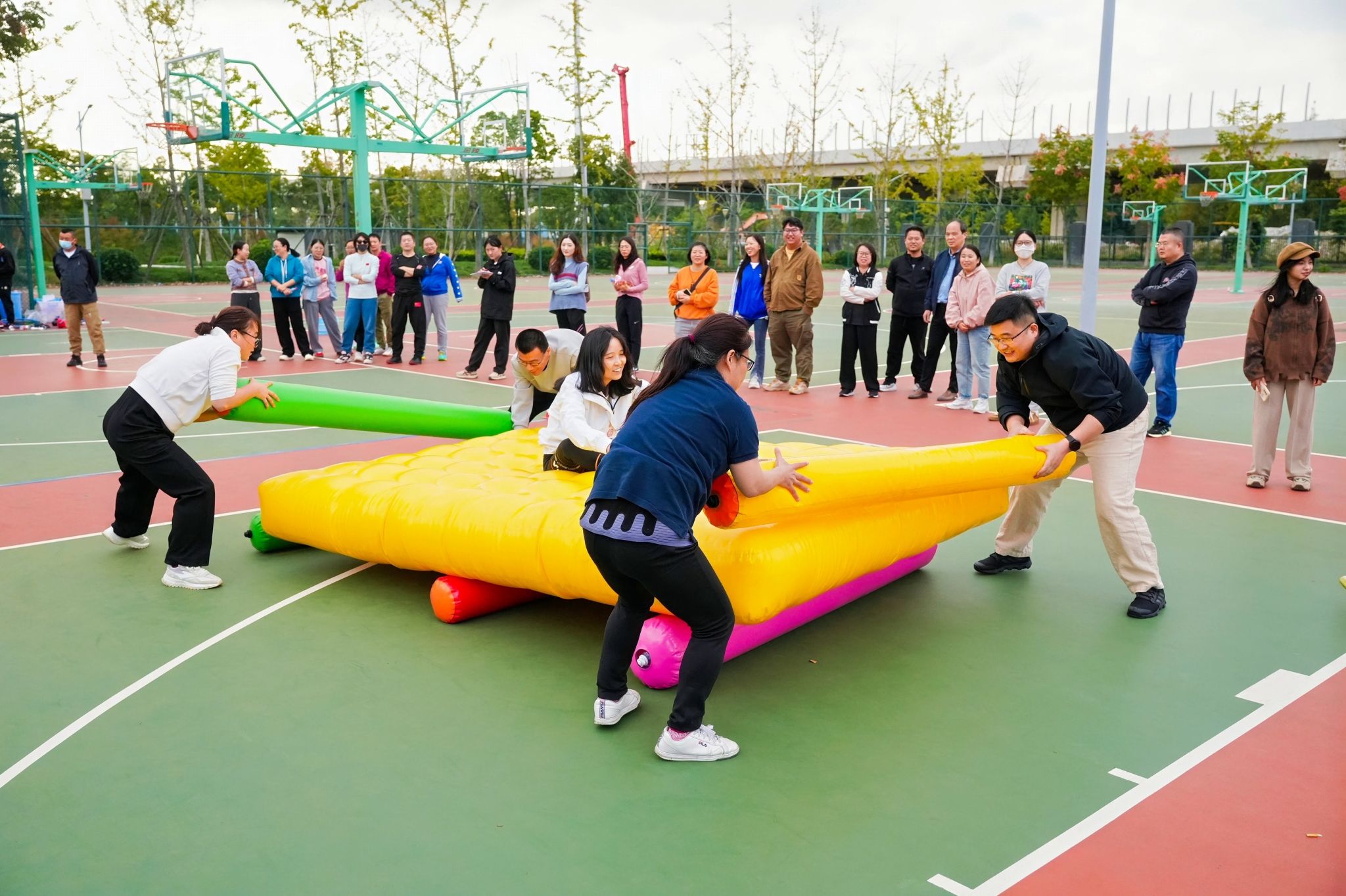 本次教职工趣味运动会赛事包括球球大作战、一圈到底、车轮滚滚、扬帆远航、8ⅹ60 米迎面接力赛等五个项目。