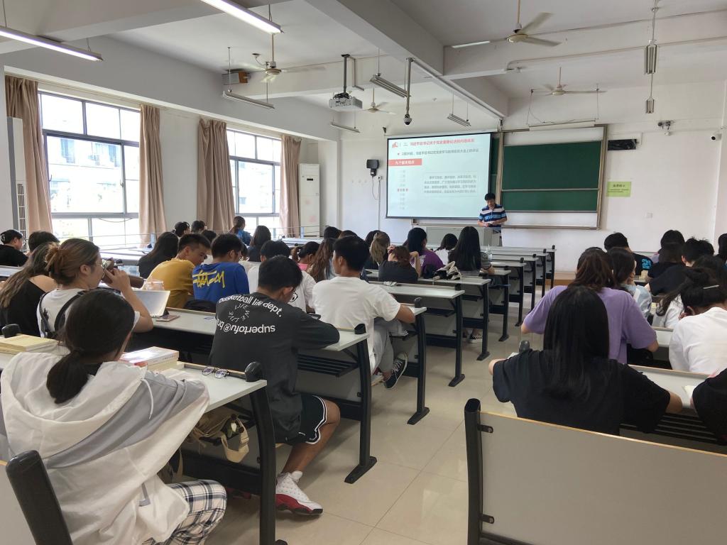 9月7日下午1:30,学院党委副书记李寒星在八号楼405教室围绕深入贯彻习近平总书记关于党史的重要论述为学生党员上了新学期的第一堂党课。