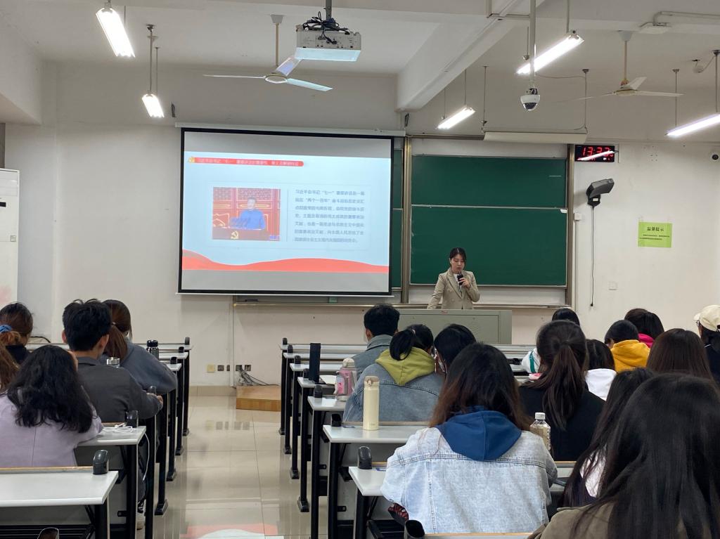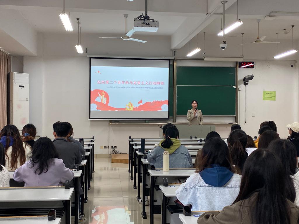 10月21日下午,3044永利集团官网邀请学校“80”“90”新时代理论宣讲团成员、来自马克思主义学院的张笑笑老师为我院在校党员作了题为《迈向第二个百年的马克思主义行动纲领——深入学习习近平总书记在庆祝中国共产党成立100周年大会上的讲话精神》的党史学习教育宣讲。