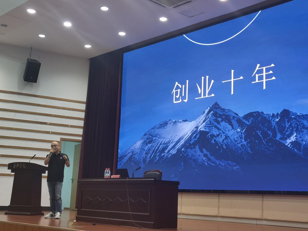 张艳阳表达了以校友身份回校参加活动的喜悦和激动之情,并结合自身的亲身经历分享了他的创业之路以及对创业的看法,同时分析了当前的创业就业形势和行业发展趋势,鼓励同学们要培养创业思维、抓住机会,为步入社会做好准备。在互动环节,张艳阳表示学习是一门终身的课题,他希望同学们珍惜校园时光,努力将自己磨练成具备好心态、敢创新、善分享、强执行的新时代大学生。
