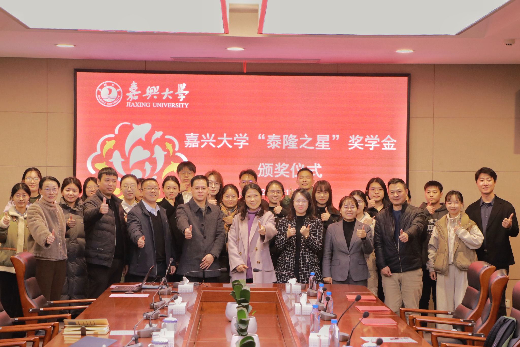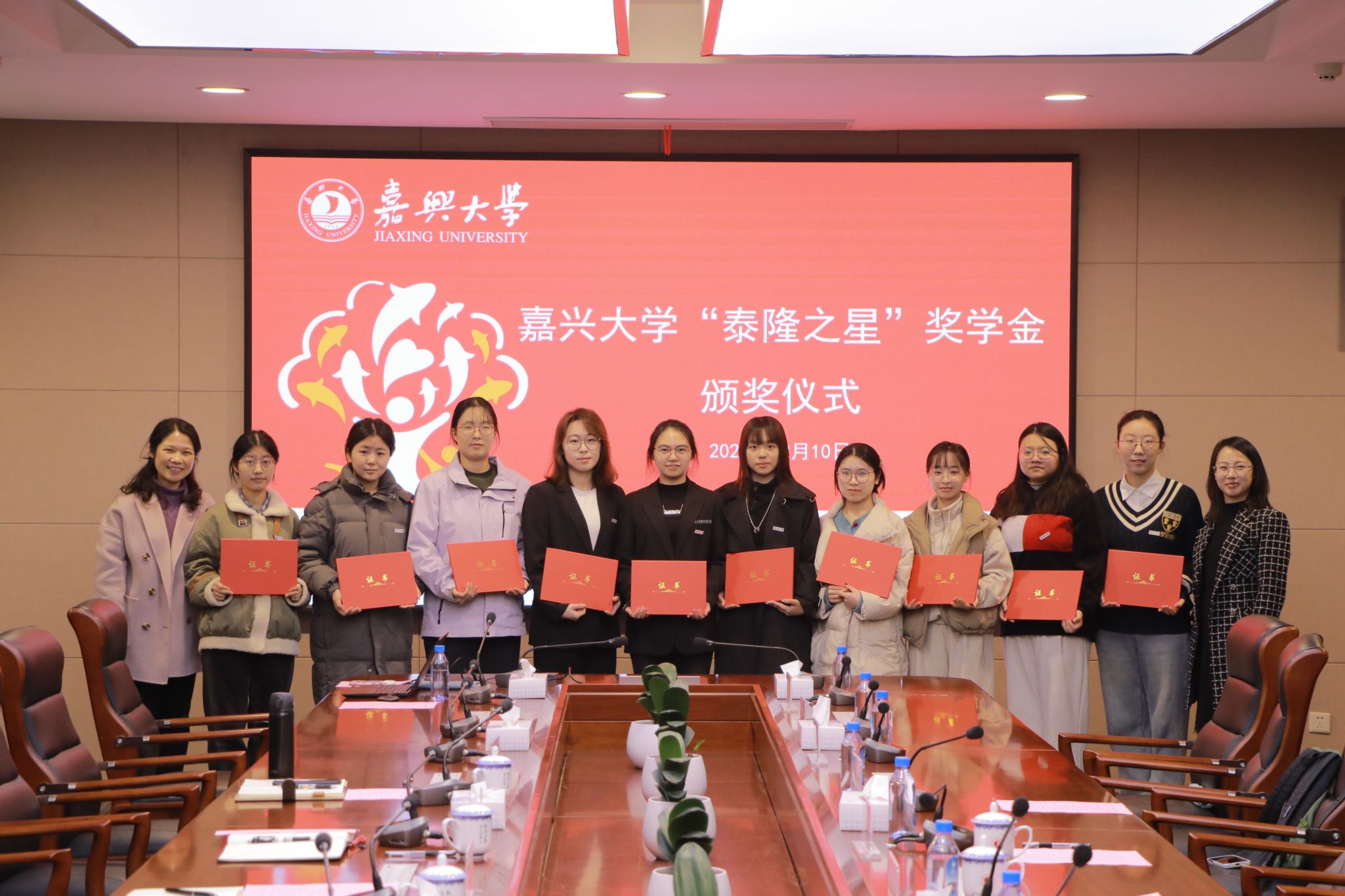 随后,双方领导为“泰隆之星”奖学金获奖同学颁发了荣誉证书并与获奖同学合影留念。