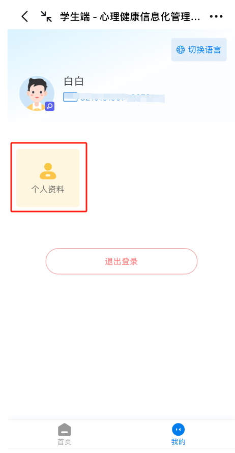 2.进入网页后,账号为身份证号,密码为出生日期(例:19900101)。输入验证码,点击“登录”后, 点击“我的”——“个人资料”,核对个人信息,并点击“绑定手机号”,进行个人信息绑定。